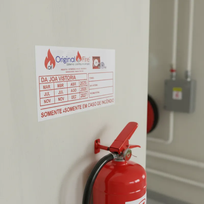 Etiqueta adesiva de inspeção contra incêndio, ideal para controle de vistoria e segurança.